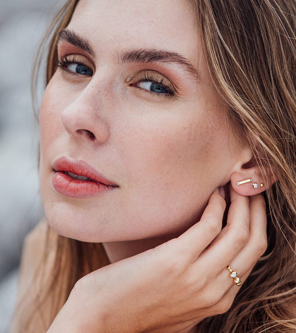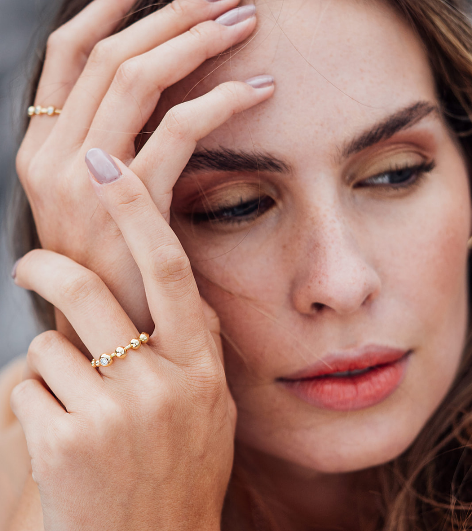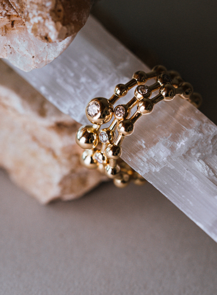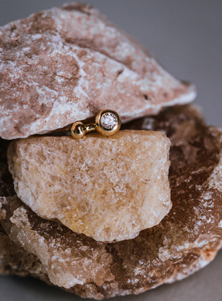 Wir schmieden die Schmuckstücke der SphereKollektion – wie all unseren Schmuck – aus recyceltem 18 Karat Gold und besetzen sie mit synthetischen Eco Diamanten.