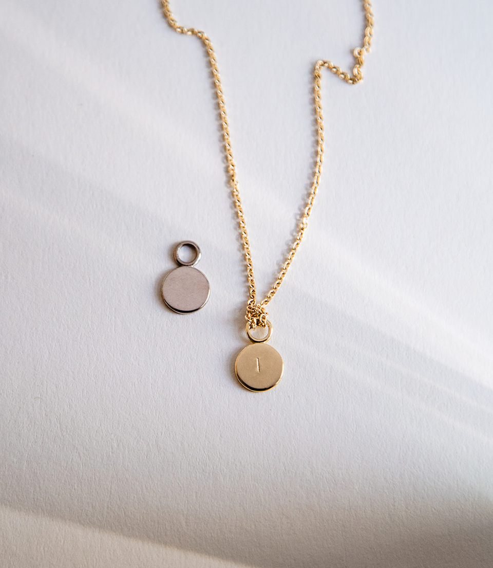 Eine Gravur ist ein wunderbarer Weg der Individualisierung eines Schmuckstücks. Für unseren Coin Anhänger gilt: Weniger ist manchmal mehr! Verewige einen Buchstaben Deiner Wahl, Dein persönliches Geheimnis, dessen Bedeutung für Außenstehende nicht direkt zu erahnen ist. Auf unserem schlichten und minimalistischen Plättchen Anhänger aus Gold können wir für Dich jeden Buchstaben des Alphabets gravieren.
