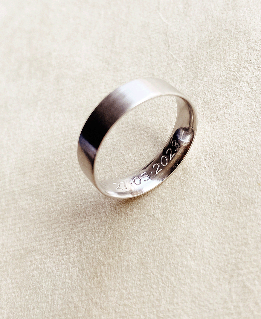 Traditionally, the other person's name and the wedding date are often chosen. Of course, personal messages or nicknames are also possible. There are no limits to your ideas when it comes to engraving.