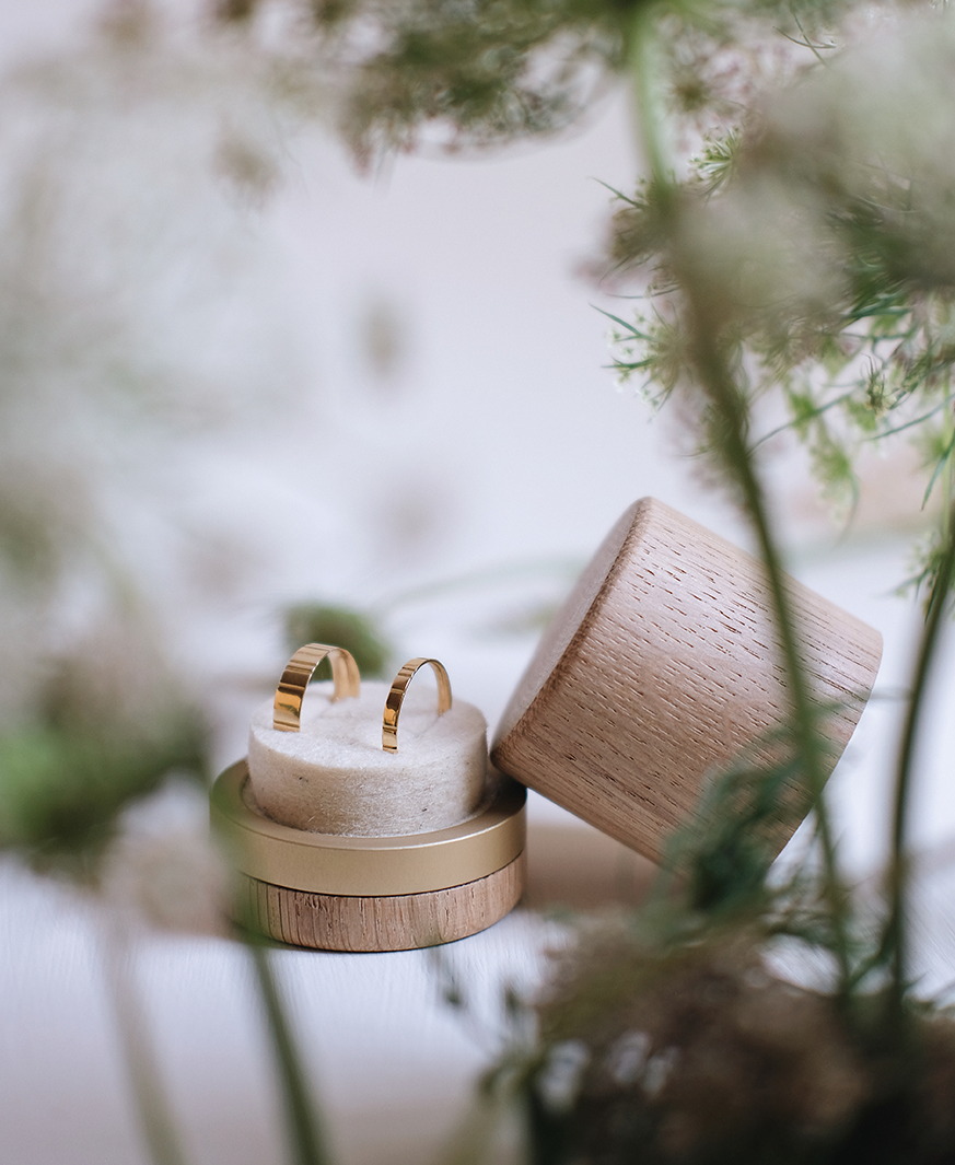 The handover of your rings is a very special and emotional moment of your wedding. We have ours to suit that sustainable ring box made of wood developed for you. Your two rings will find their place in a timeless and stylish way for the big moment.