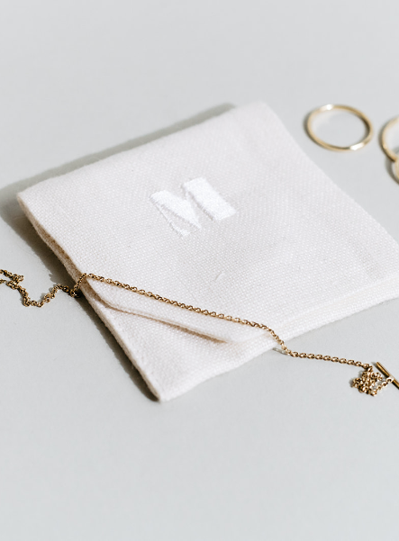 You have the choice: Either we ship our handcrafted, sustainable jewelry in paper boxes or in beautiful linen bags – our Linen Cases.