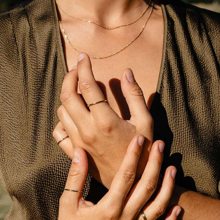The beautiful Essential necklace from the Essence collection, handmade in Germany, is made from German recycled 18 carat gold. Clearly and quietly designed, like the sparkling line between ocean and sky, quiet, like a breeze passing through the treetops - make our Essential necklace a part of your story!