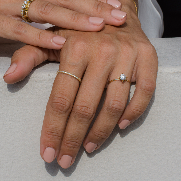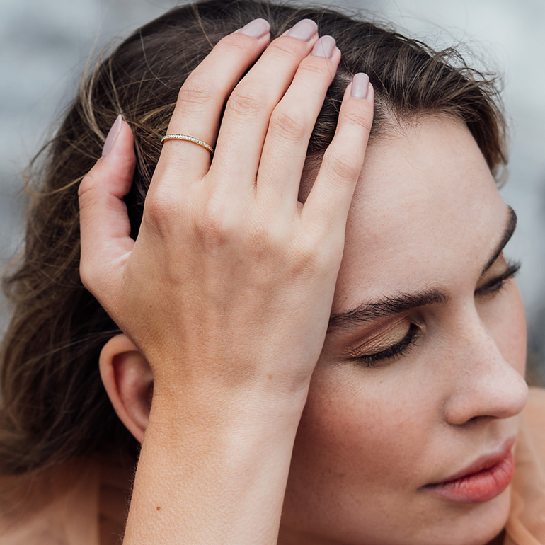 Traditionally, the Eternity Ring was usually worn between the wedding ring and the engagement ring on the ring finger of the left hand to connect them. This can be traced back to an ancient belief that the Vena Amoris (Latin for 'vein of love') flows through the left ring finger and provides a direct connection to the heart. However, this tradition cannot be proven exactly and there are many cultures that wear wedding and engagement rings on other fingers as well and give the same reason. In the end, therefore, it doesn't even matter what the tradition says, as long as you follow your own symbolism and feel-good factors. Eternity rings also look wonderful on their own or on another finger or can be combined very well with other rings. In the end, it's what you like and what feels right that counts.