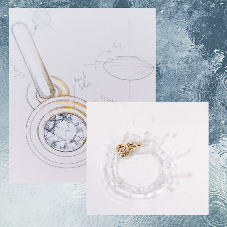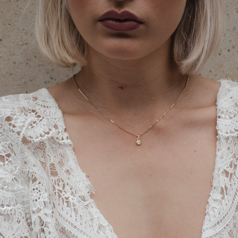 The beautiful Drops of Memories pendant from the Memories of the Sea collection, handmade in Germany, is made of German recycled 18 carat gold and is set with a 2mm lab diamond. What would it look like if you captured the sound of the waves, the glitter of the sun on the waves, the vastness of the ocean in a piece of jewelry? We think:exactly the same. Choose the deep beauty of the sea - with our Drops of Memories pendant on the fine Essential chain!