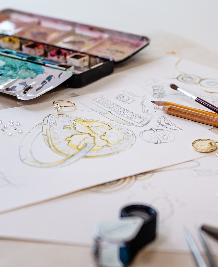 > Nach Deiner Bestätigung trifft Dein Schmuck bei uns ein und in liebevoller Handarbeit entsteht aus unserem gemeinsamen Entwurf Dein neues Schmuckstück.