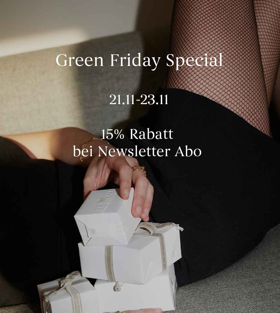 Melde dich jetzt für unseren Mindful Letter an und erhalte einen 15% Code für deinen achtsamen Einkauf vom 21.11-23.11.2025. Erfahre mehr über Achtsamkeit, Nachhaltigkeit und unseren Schmuck!